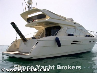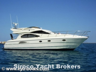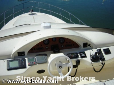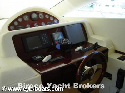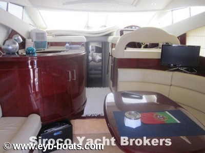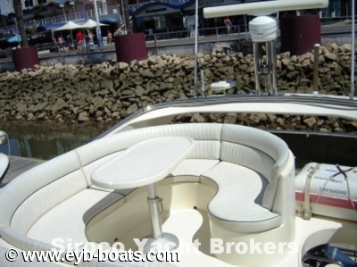 3 Cabins layout. Big suite with double bed, cabinets and complete bathroom. Two double cabins with one bathroom. Good galley. Excellent salon with navigation center at starboard side. New leather upholstery . Flybridge with sofas, table and repeaters. Equipment: 9KWAs Maze Generator, Cruisair 16.000+7.000 BTUs Air conditioned, Radar, GPS/Plotter with repeater in Flybridge, VHF with DSC, Autopilot with repeater, Bow thruster, Hydraulic flaps, Electric Windlass, Battery charger, Searchlight.