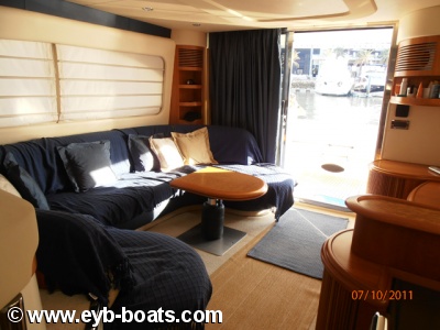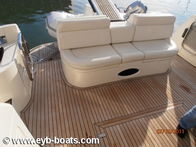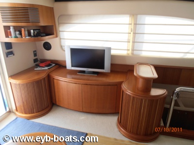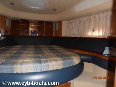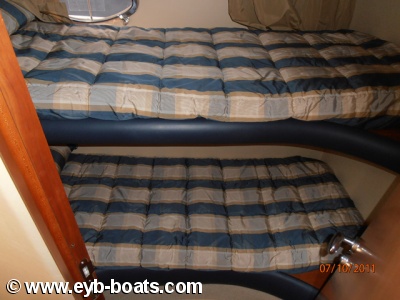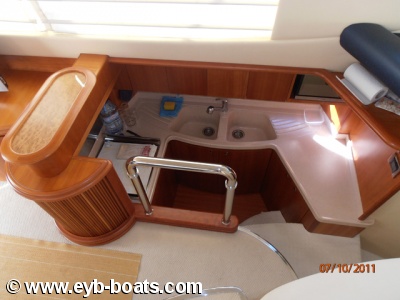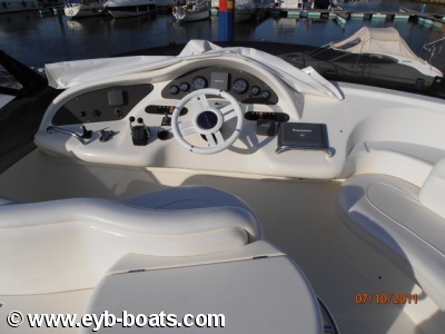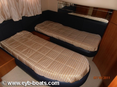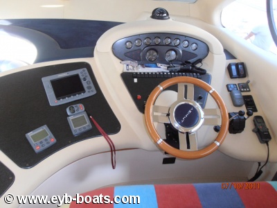 Total of 3 cabins. Large suite at the bow with double bed and bathroom, side cabin with two single beds and a third cabin with two bunk beds, both served by a bathroom. Good full kitchen. Large lounge with command area at portside. Sailor aft cabin, upholstery leather. Some equipment: Radar with repeater on fly, GPS / Plotter with repeater on fly, R 240E VHF radio with DSC and fly repeater, with repeater Autopilot, Bow thruster, electric winch for anchor, Kohler Generator with 75 Hours 11 Kwas Air Conditioning with dehumidifier, stainless steel and teak telescopic passarelle, can raise 260 Kgs, Ice maker. Dinghy Arimar of 2.70 Mts with Honda 15 HP. Boat in good condition