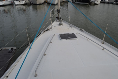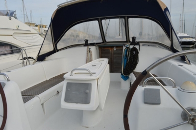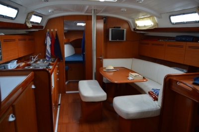 3 Cabins layout with 3 bathrooms Bow cabin with double bed, cabinets and private bathroom. Enormous salon with sofas and table at starboard. Long galley at port with stove, oven, 2 fridges and microwave. Complete chart table at starboard. In the aft 2 cabins with double bed, wardrobe and private bathroom. Spacious cockpit with 2 steering wheels, cockpit table, cockpit shower. Equipment: Bow-thruster, Radar, GPS/plotter, Autopilot, VHF with DSC, Depthsounder, Speed/log, Wind station, EPIRB 406 MHZ, Radio with CD player, Compass, Electric Winch, Electric Windlass, Air conditioned, TV set, Microwave, Hot water, Stove, Oven, Manual foot pump, Battery Charger, Holding tank. Sails: Battened Main Sail, Furling Genoa, Sprayhood, Bimini. Dinghy with Outboard engine. Boat in good condition.