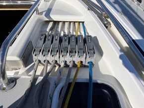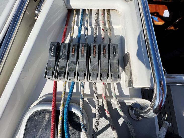 All sail controls and halyards let aft to winches and clutches in cockpit