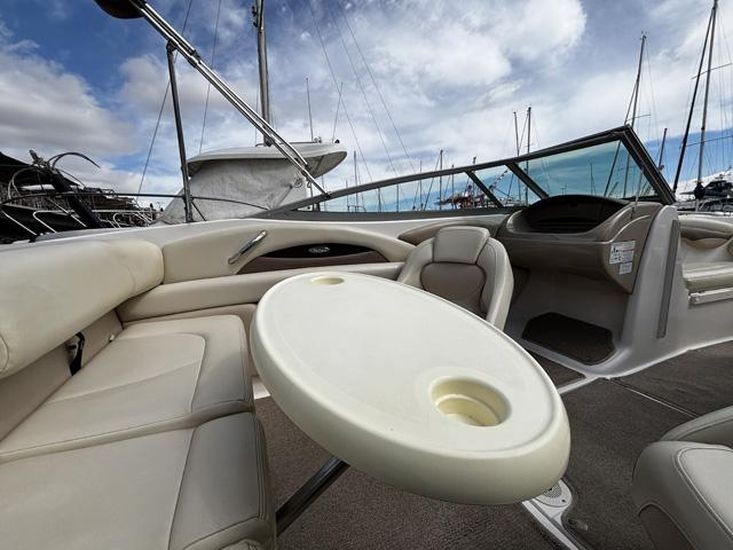 Powered by a 220 hp MerCruiser engine, she offers excellent acceleration, handling, and overall performance, making her equally suited for family cruising and watersports activities.