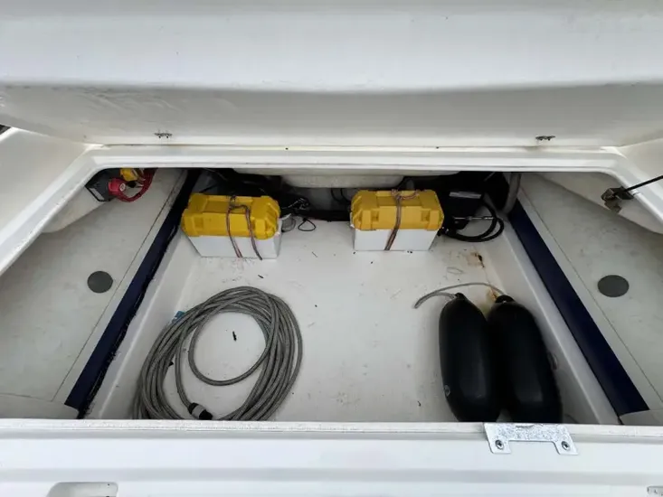 - Large sunpad at bow with a deep storage locker beneath