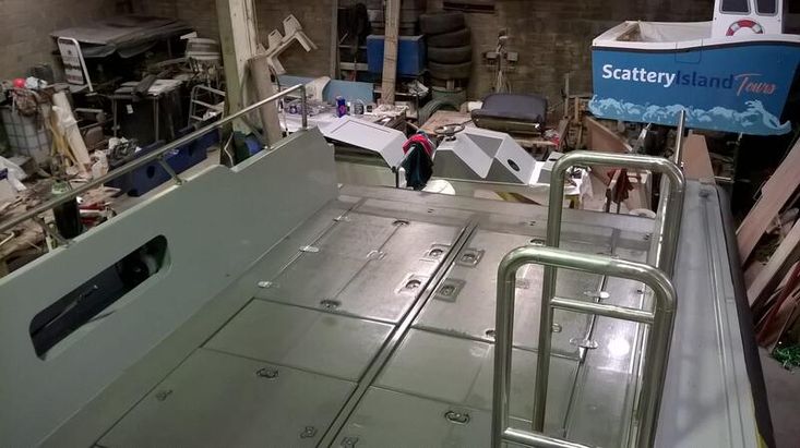 It can also be utilized for transporting light goods or a vehicle, thanks to its spacious open back deck and a payload capacity of 3000 kg. Additionally, it features a removable transom, a heavy-duty boarding ladder, and passenger seating.