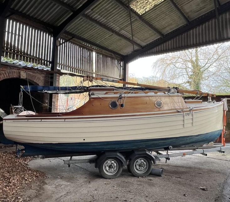 Built Canvey Island 1959. Selling our much loved Holly Blue, a classic boat ideal for shallow waters with a lifting keel/centreboard (replaced with a galvanised plate in 2022) and lots of room below decks for those nights aboard.