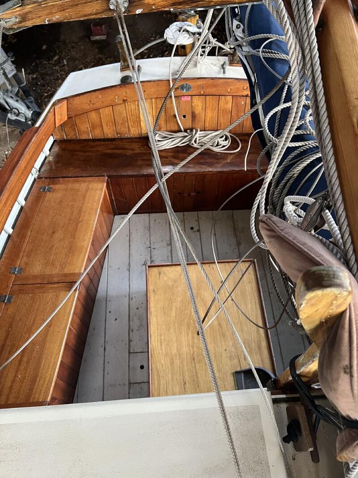 Automatic and manual bilge pump. Cockpit cover in need of minor repairs. Boom tent, good condition. Ample cockpit lockers, various fenders.