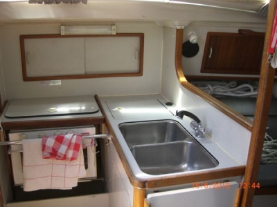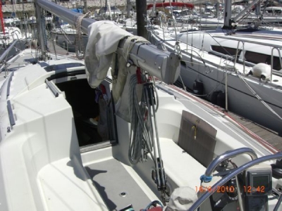 Bow closed Cabin with couple bed. Great hall with sofas in the laterals and central table. Complete kitchen at Portside. Navigation Table at starboard. In the Stern two cabins with couple beds and two WC. Electronic Equipment: VHF with DSC, GPS/Plotter, Depth, Speed, Wind Station, Auto Pilot, Navtex. Sails: Complete set (Main Sail, Genoa 130%, Genoa III for Self-Taking system 90%) all triradial (2005) + another old set of Sails. Symmetrical Spynnaker + Genaker (both news). Life Raft (8 persons) in container, Facnor Furling System, Dog House. Boat in good condition of maintenance.
