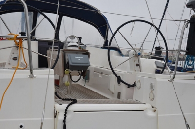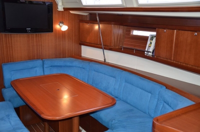 3 cabins Layout with 2 bathrooms Bow cabin with central bed, wardrobe and sofa. Complete Private bathroom in owners cabin. Salon with U-shaped sofa and table at starboard. At port side complete galley with stove, oven, double stainless sink, fridge microwave and several cabinets. At port side chart table with all the electronic equipment. In the aft, 2 cabins both with double bed and wardrobe. Complete bathroom at port. Full teak deck and cockpit with 2 steering wheels and central cockpit table. Equipment: Radar, GPS/Plotter, Autopilot, Electric Windlass, Bow-thruster, Depth-sounder, Speed/Log, Wind station, Solar Panels, 2x battery Chargers, Inverter, Heating system, VHF with DSC, Radio with CD player, TV set, Pc connection, EPIRB, Life raft, Led lights, 3 Blades folding propeller. Sails: Main sail, Furling genoa, Asymmetrical Spinnaker, Sprayhood, lazy bag. Dinghy with outboard engine. Boat in excellent condition.