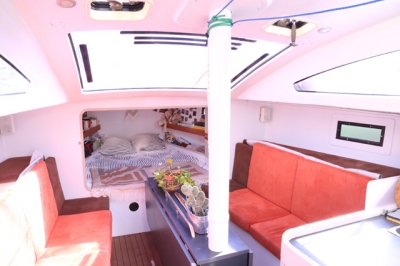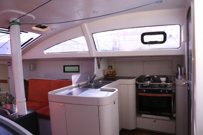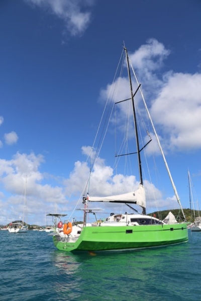 Carbon mast, aluminum boom and spinnaker pole in carbon. Fin keel, with double rudder. Excellent commitment between speed and comfort.