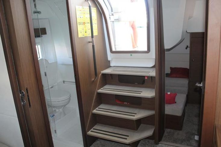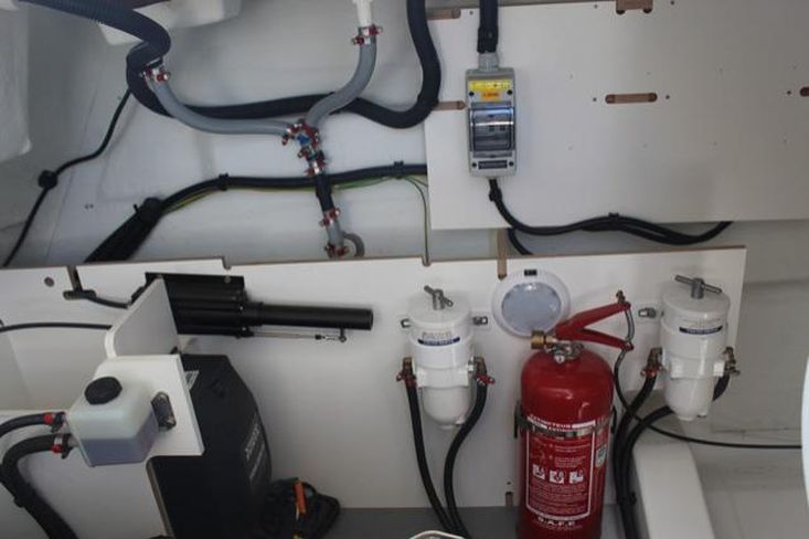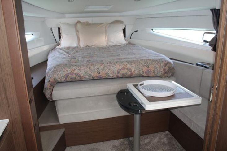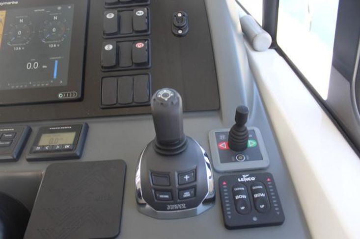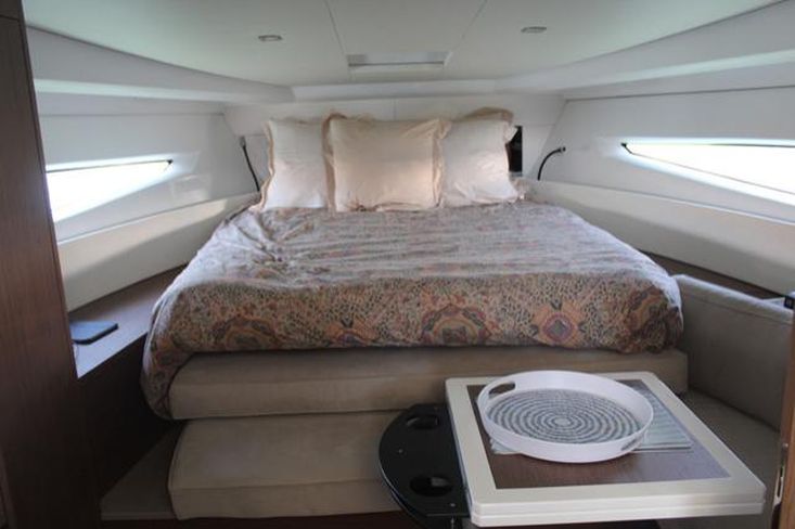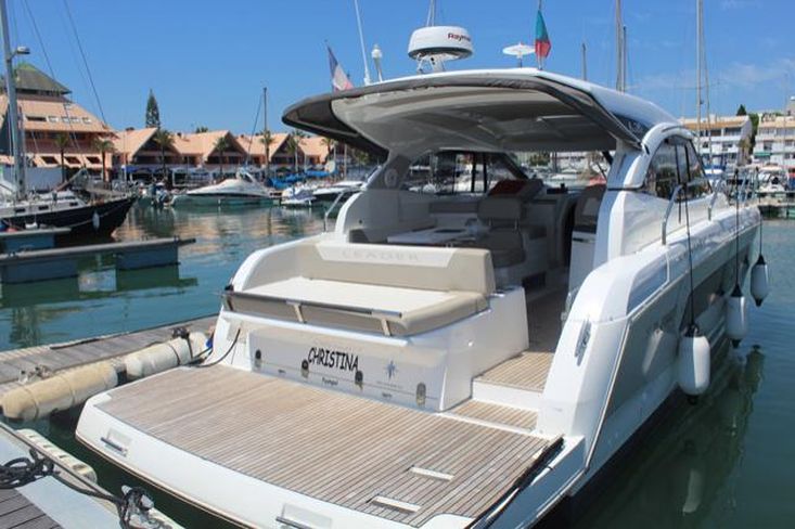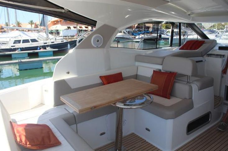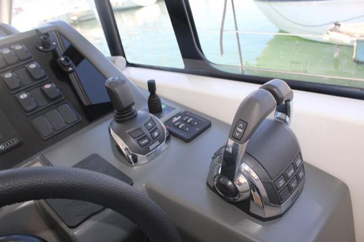Joystick para motores, Motor de Proa, Piloto Automático, Radar + Plotter, Sportop com abertura elétrica, Teca no cockpit e plataforma de banhos, capas completas para o cockpit e almofadas.