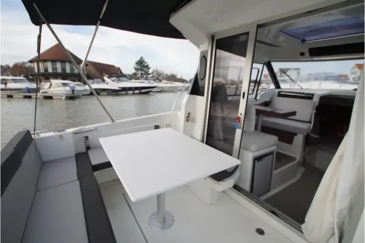 The MF795 Series 2 provides an airy saloon with large windows, a versatile dinette that converts to an additional berth, and a fully equipped galley. Forward features the spacious double cabin and separate enclosed heads, making overnight stays easy and comfortable. Sliding doors and clever design details provide effortless movement around the boat, while the generous cockpit offers fantastic seating and space for entertaining or soaking up the sun.