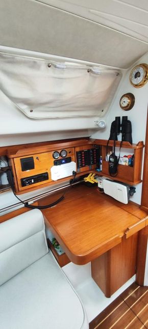 VHF with DSC (Lowrance) with AIS, B&G Vulcan chartplotter with Portugal & Spain charts, anemometer, B&G display, log and depth sounder (B&G).