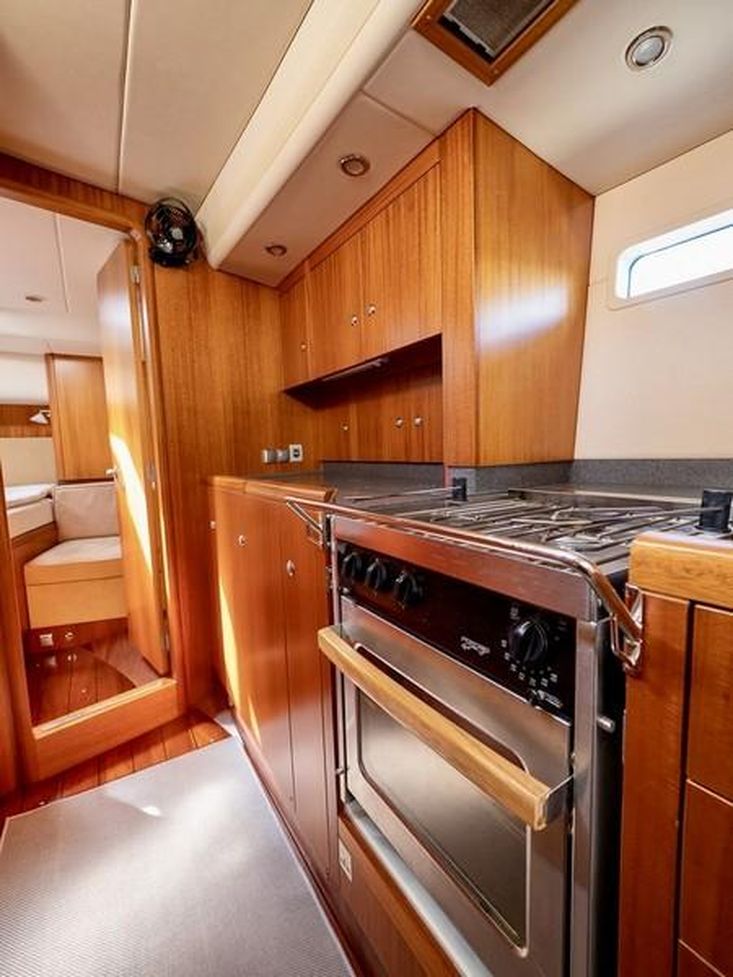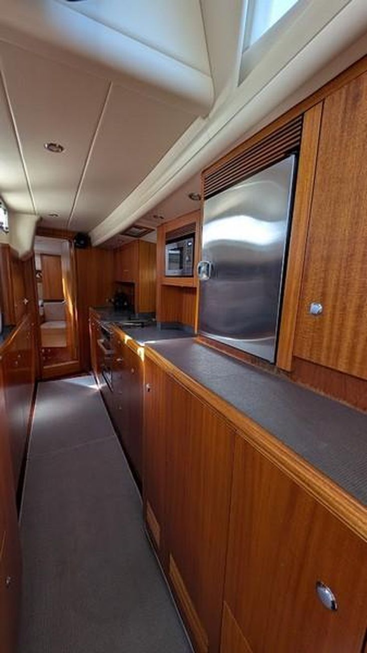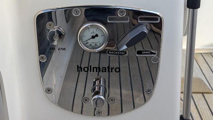 Fractional Seldén mast with hydraulic in-mast furling, hydraulic genoa furling, hydraulic backstay and vang, Hydranet sails (main and genoa), inner forestay, gennaker, storm jib, Code 0 with furler, mast lighting.