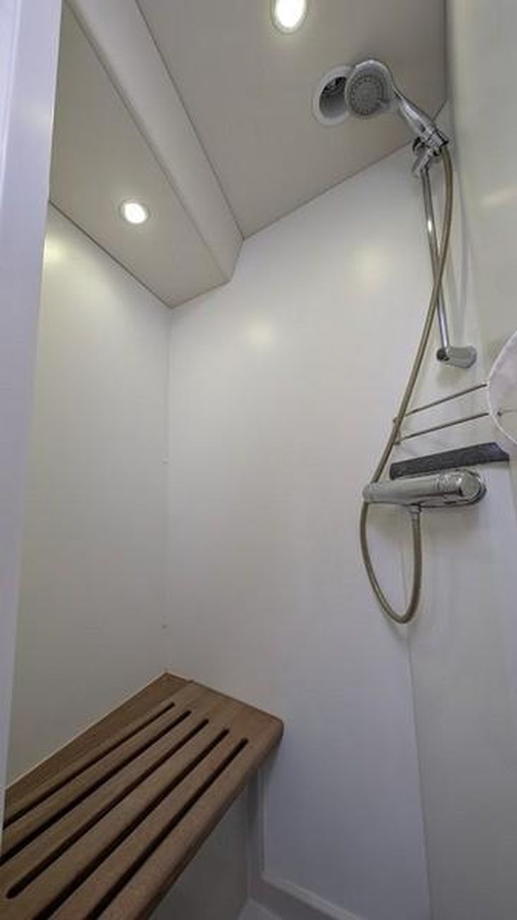 Aquecimento 2× Eberspächer, TVs 32”, estores Oceanair, iluminação noturna ambiente, tomadas 220V e 12V em todas as cabines, sistema água pressurizada, dessalinizador Newport 700, tanques: combustível 1200 L, água 800 L, águas negras 140 L.