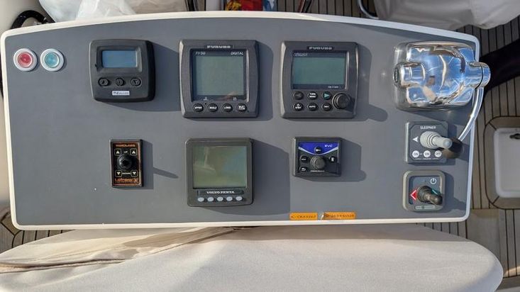 Furuno radar, 2 independent Furuno autopilots, 2 Furuno GPS/Plotters (cockpit and chart table), Silva compass, dedicated navigation monitor, Starlink, mast and deck LED lights, radar reflector, EPIRB.