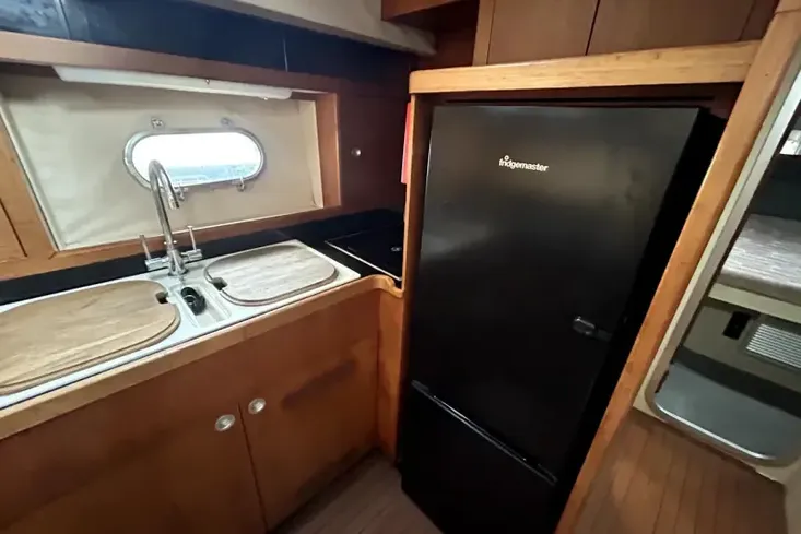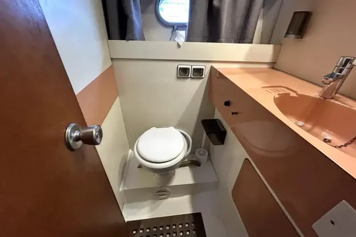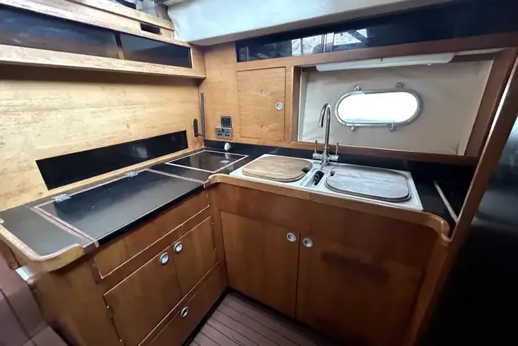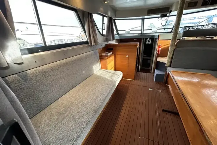 The boat is well-priced, as on the owner’s last trip on the boat, the conrod went through the block on the starboard engine, meaning the boat is being sold as a project, or would make an ideal liveaboard at an attractive price.