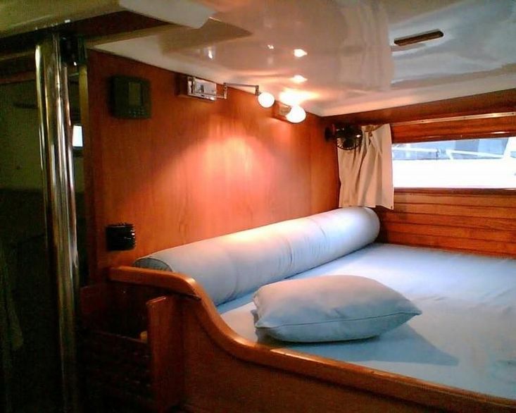 Na proa cabine com cama e armários e casa de banho.