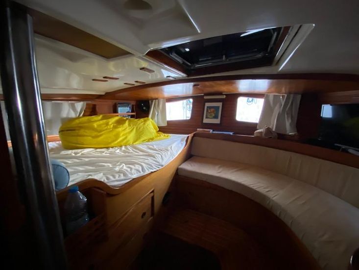 Carré avec table à manger et banquette à bâbord, et longue banquette à tribord (convertible en couchette simple). Cuisine entièrement équipée et table à cartes confortable.